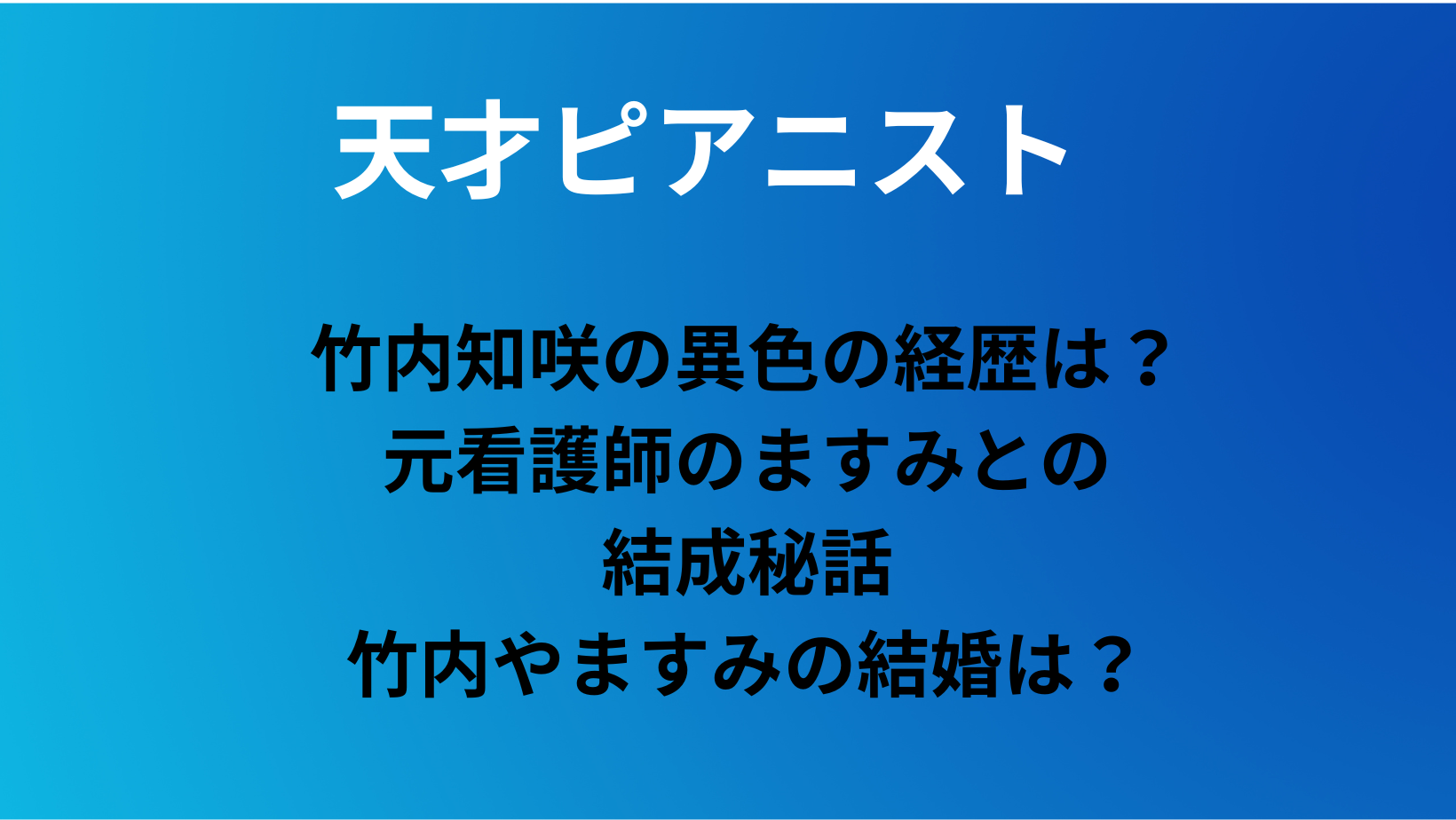 天才ピアニスト(竹内・ますみ)は結婚してる?