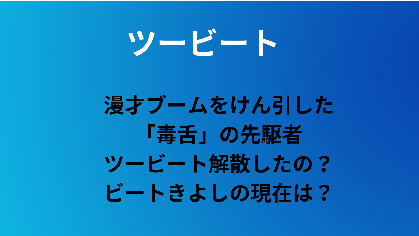 「結局、ツービートは解散したの?」「今の二人の仲はどうなっている?」
